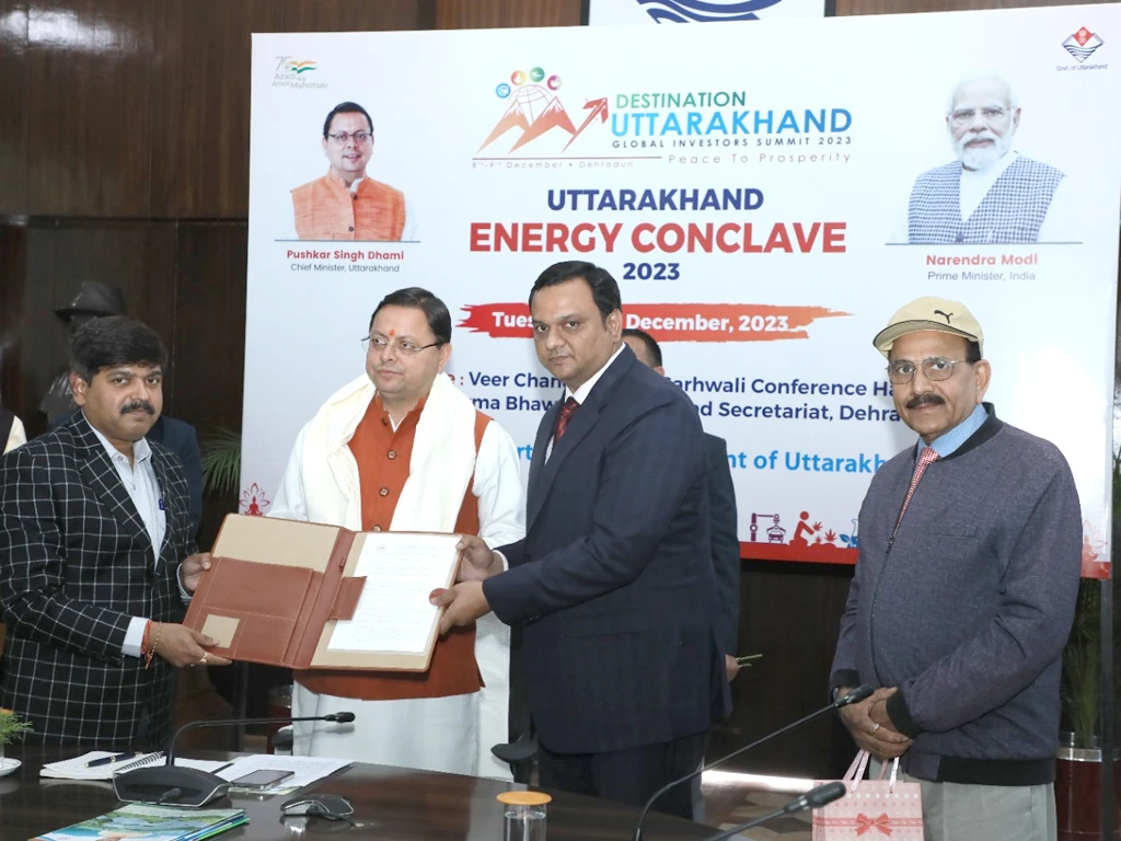 22 Apr, 2023Hon’ble Chief Minister, Uttarakhand giving letter of award for renewable energy.